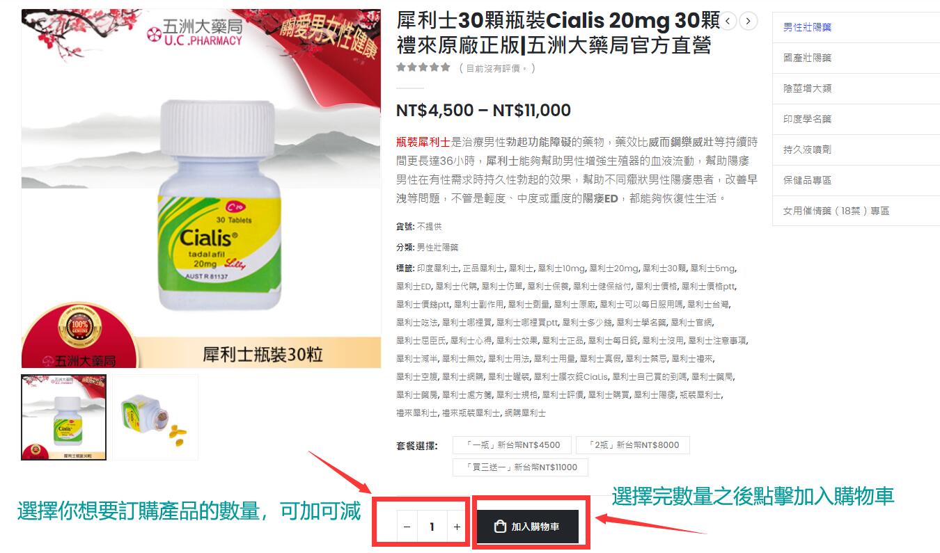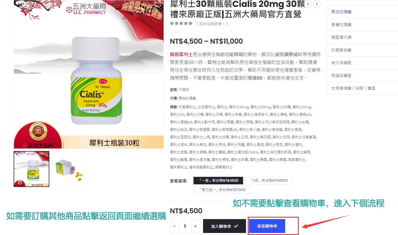 一:首先,您從五洲大藥局首頁挑選您所要訂購的商品,點擊進入商品詳情頁面(如下圖)