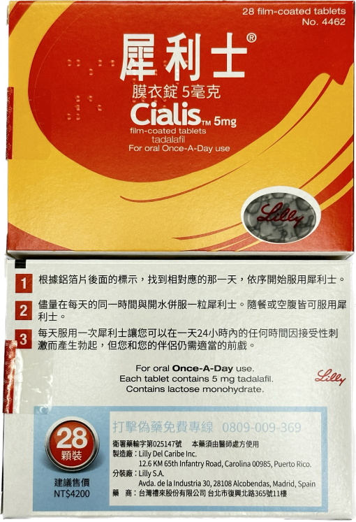 【中文名稱】:犀利士每日錠、犀利士5mg每日錠、犀利士5mg、希愛力5mg